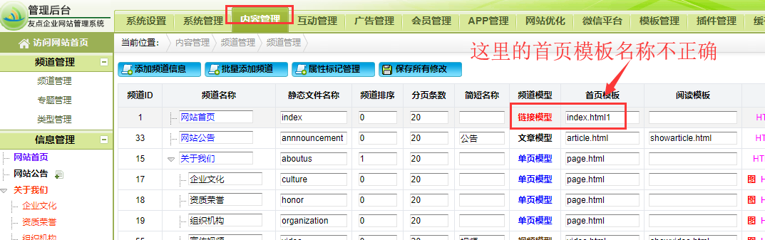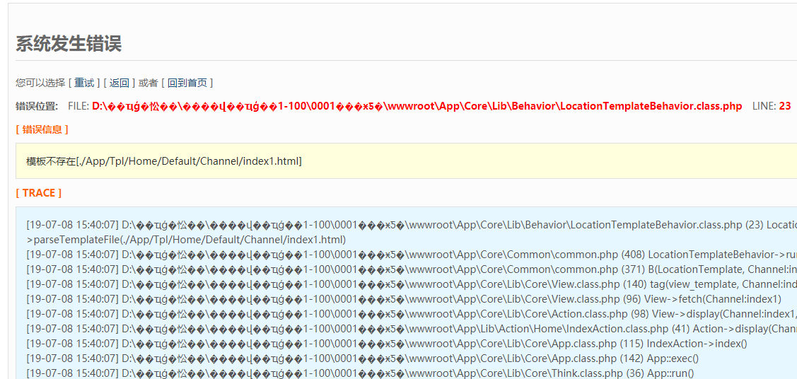 模板文件不存在,原因可能是模板文件缺失或者被删除导致,也有可能是首页模板的静态静态文件名被修改【