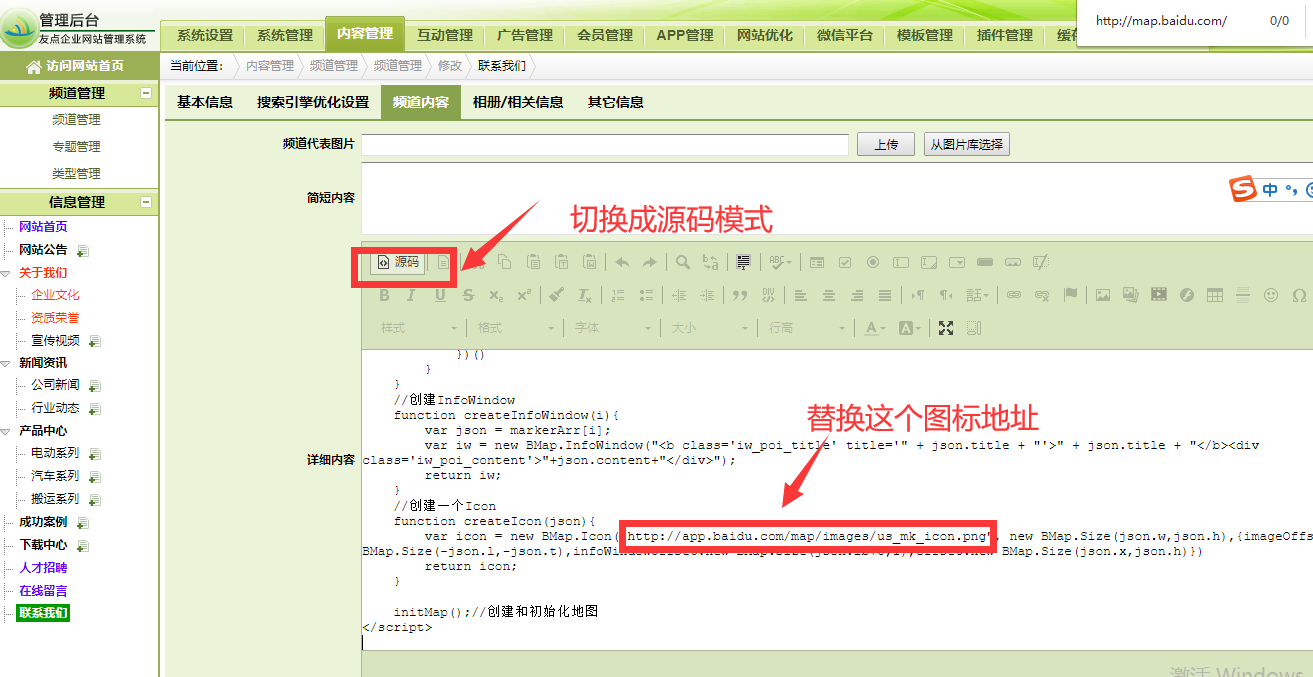 百度地图生成器(http://api.map.baidu.com/lbsapi/creatmap/)就很好的满足了这一部分用户的诉求,快速简单的给自己网页添加一个加标注的地图【地图添加方法:https://www.tuomacms.com/】,但是美中不足的,现在这个百度地图生成器添加标注后,标注图标不显示,如下图: