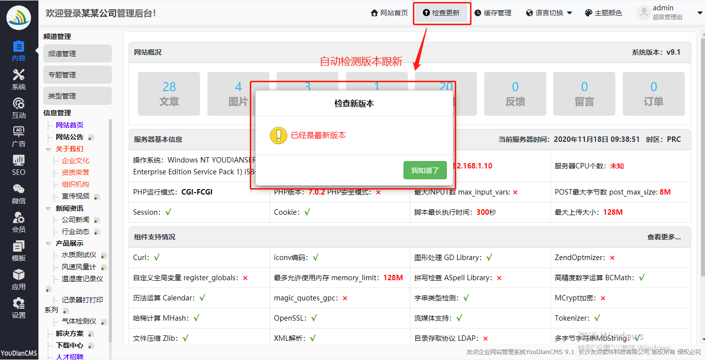 YouDianCMS 9.1版 2020-11-17 一键升级